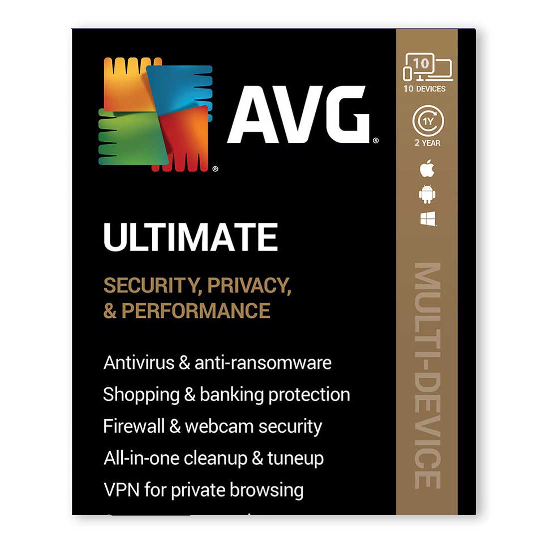 AVG Ultimate Multi-Device (10 Devices | 2 Year) is our premium all-in-one antivirus, anti-malware, tune up and VPN pack for you and your entire family. You get our best security, performance and privacy products for Windows PC’s, Mac computers and Android/iOS smartphones & tablets.